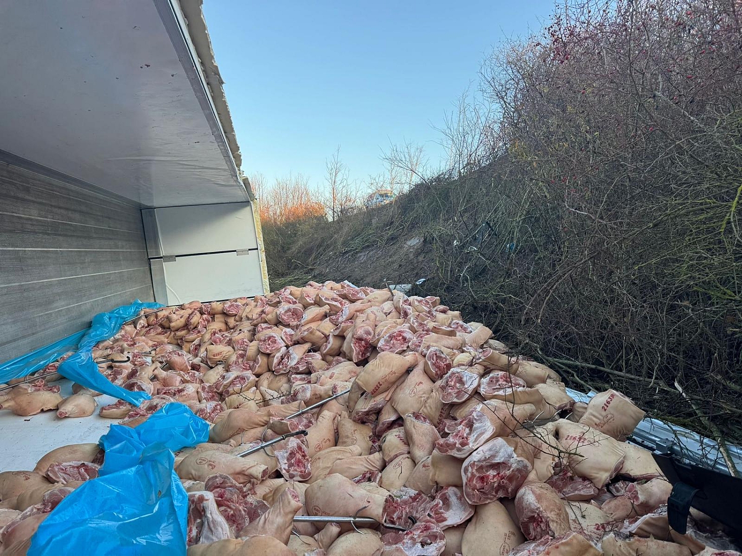 Unfallserie auf der A14: Sekundenschlaf sorgt für freiliegende Schweinehälften