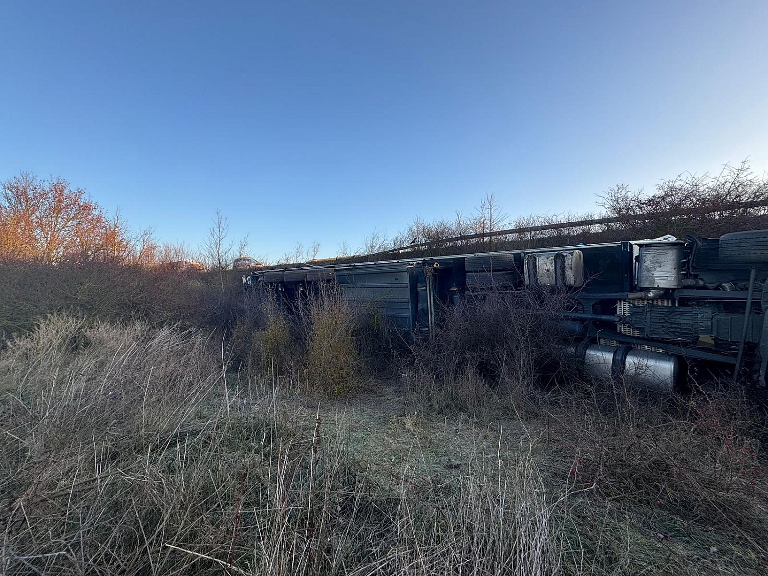 Lkw im Graben nach Sekundenschlaf