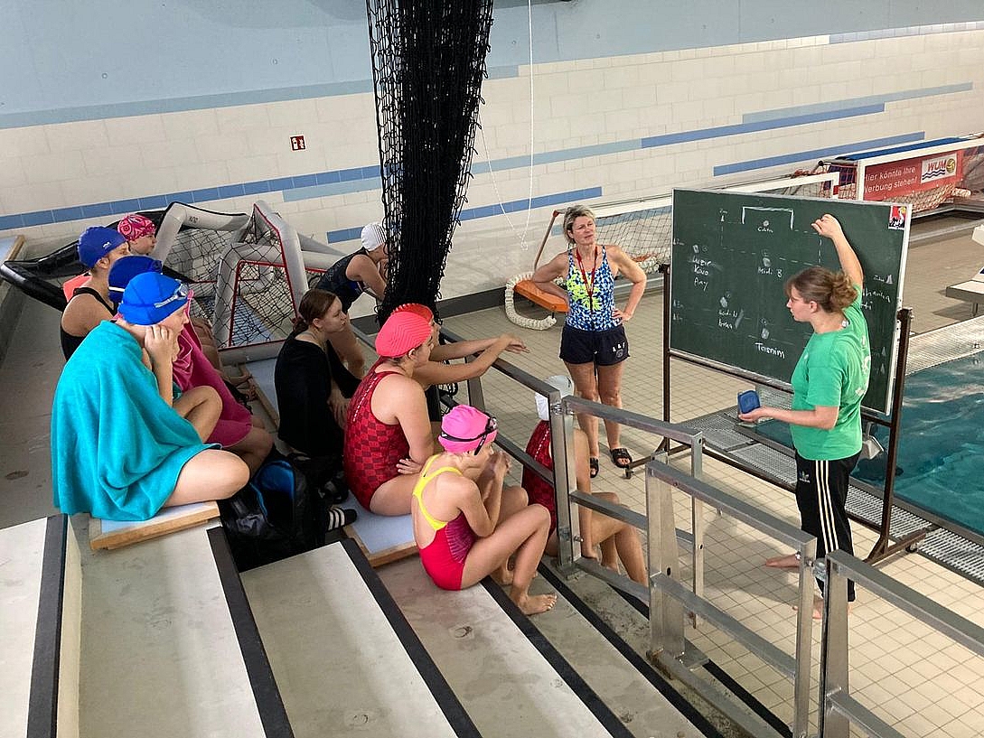 Hauptverantwortlich für die jungen Damen ist die WUM und in Person Trainerin Antje Stille: „Ich freue mich riesig, dass wir gemeinsam mit den teilnehmenden Vereinen ein U14 Damenteam auf die Beine stellen wollen.“ Ins Wasser „geschmissen“ wurde die Mannschaft bereits wenige Tage nach der Gründung. Ende Oktober nahmen die Mädels bereits mit einer kleinen Mannschaft in Berlin an der Vorrunde zum Deutschen Wasserball Pokal teil. Dort wurden alle Spiele gegen die favorisierten und voll besetzten Teams der Wasserfreunde Spandau 04, des SC Chemnitz sowie des Schwimmsportverein Esslingen verloren. „Aller Anfang ist schwer! Aufgrund der geringen Trainingseinheiten, der noch dünnen Kaderdecke und dem Umstand, dass es für viele Spielerinnen der erste große Wettkampf ihrer Karriere war, war das nicht anders zu erwarten. Trotzdem war die Teilnahme wichtig, um in den Wettkampfbetrieb reinzuschnuppern“, so Antje Stille. Bis zum Jahresende folgen weitere Trainingseinheiten, in denen sich die Mannschaft festigen muss. Denn Mitte Januar 2026 folgen die Platzierungsspiele im Deutschen Wasserball Pokal, diesmal in Aachen.